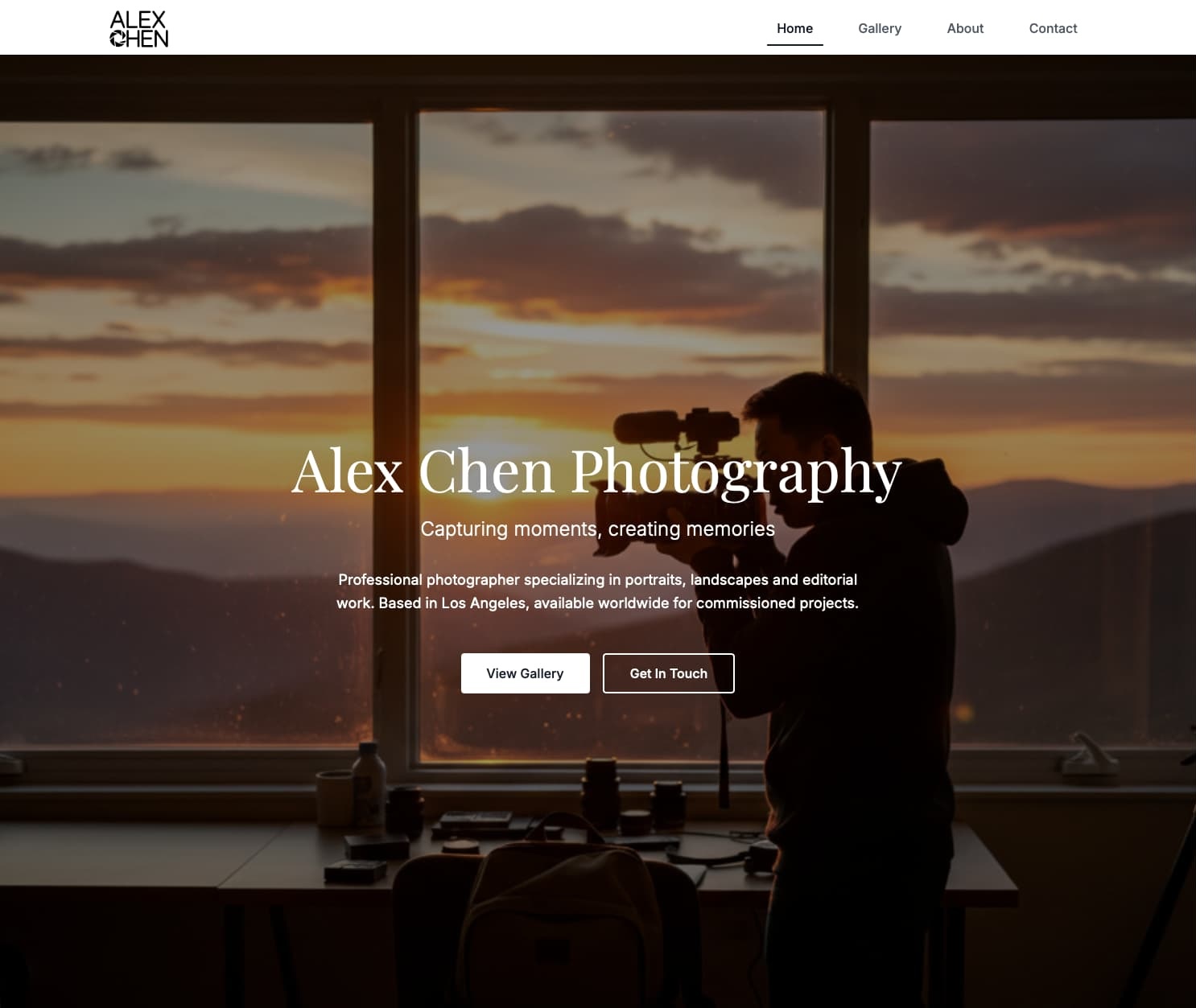 Photography portfolio with interactive lightbox gallery and category filtering. Vite + React + TypeScript + Tailwind with lazy loading. React Router keeps transitions smooth — clean, type-safe and performance-focused.